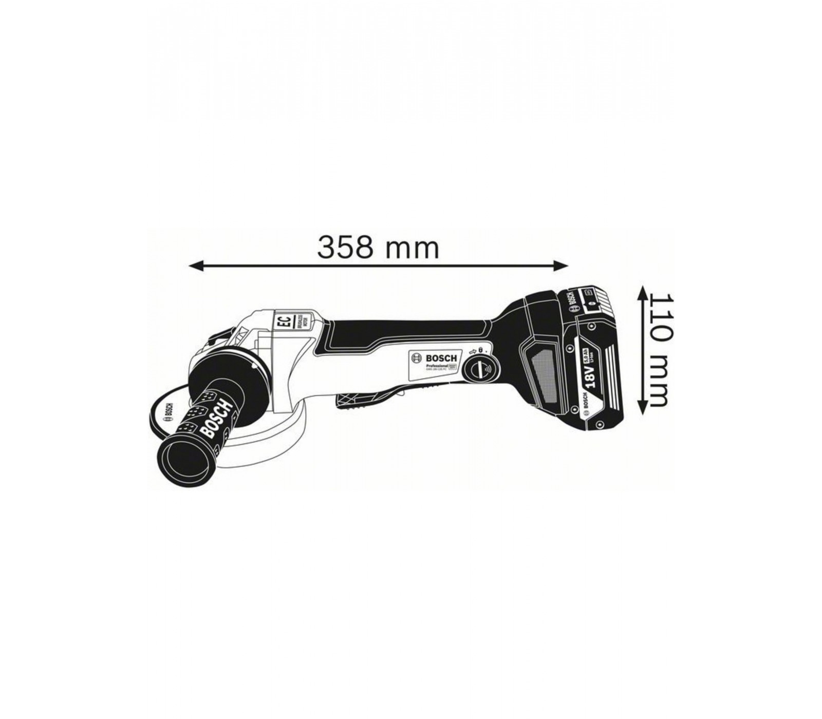 Akku vinkelsliber Bosch GWS 18V-10 PC (06019G3E0A), 18 V, 125 mm