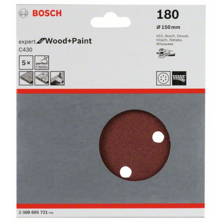 Bosch slibepapir C430, 150 mm, korn 180, 5 stk.