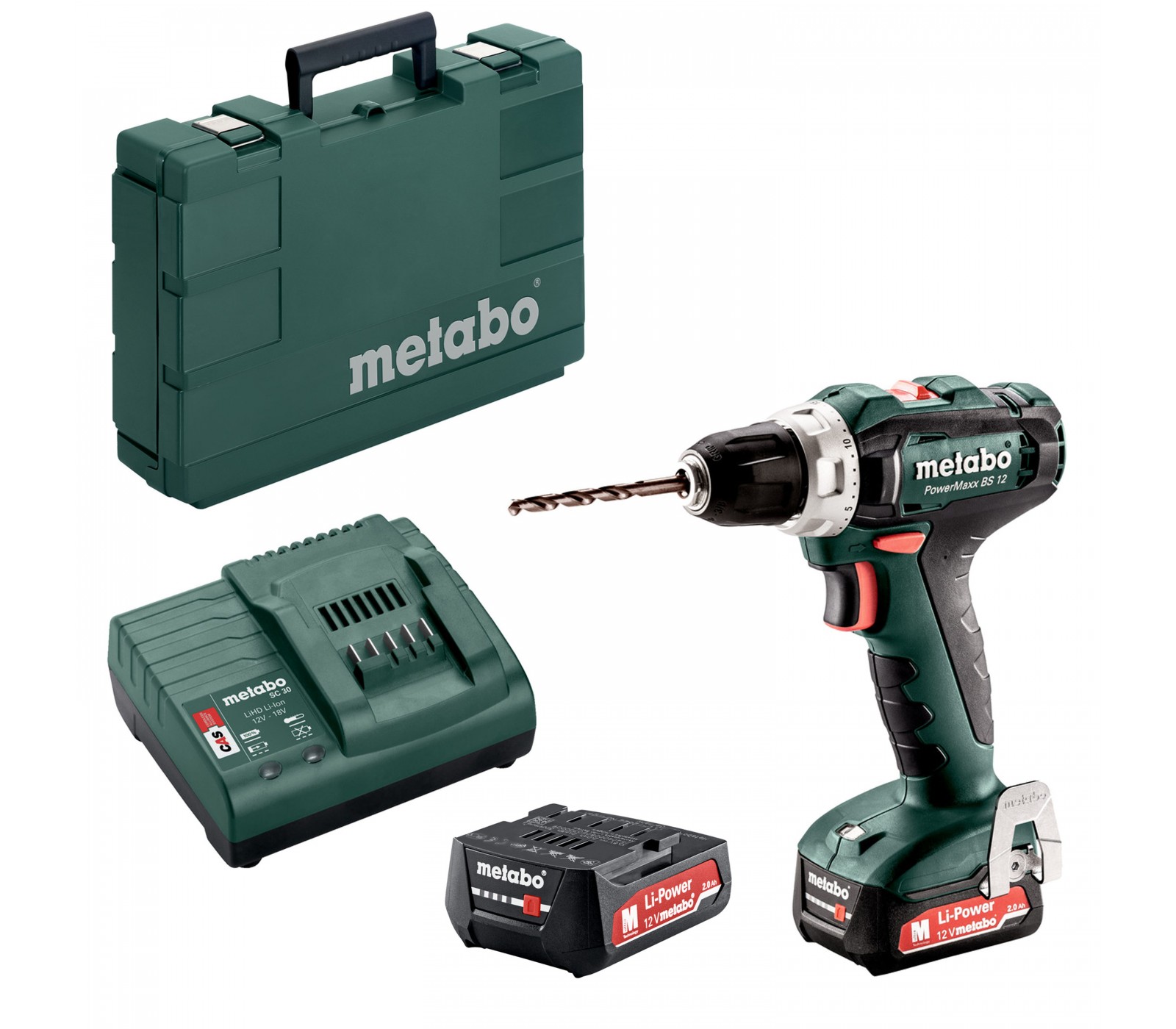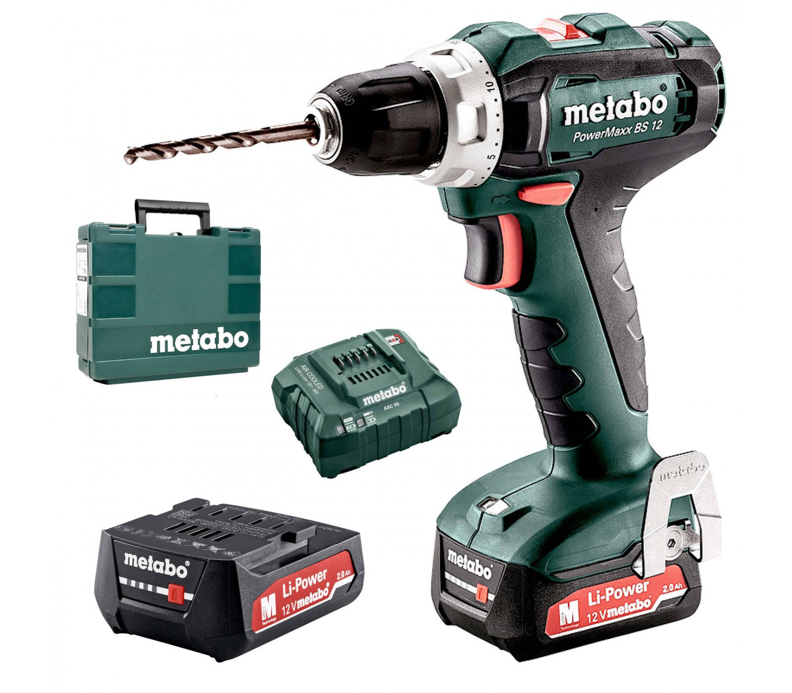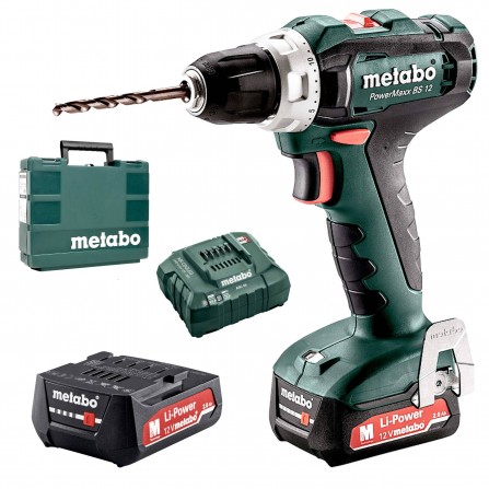 Akku boremaskine Metabo PowerMaxx BS 12 (601036500) sæt, 12 V, 2 x 2 Ah, oplader + kuffert