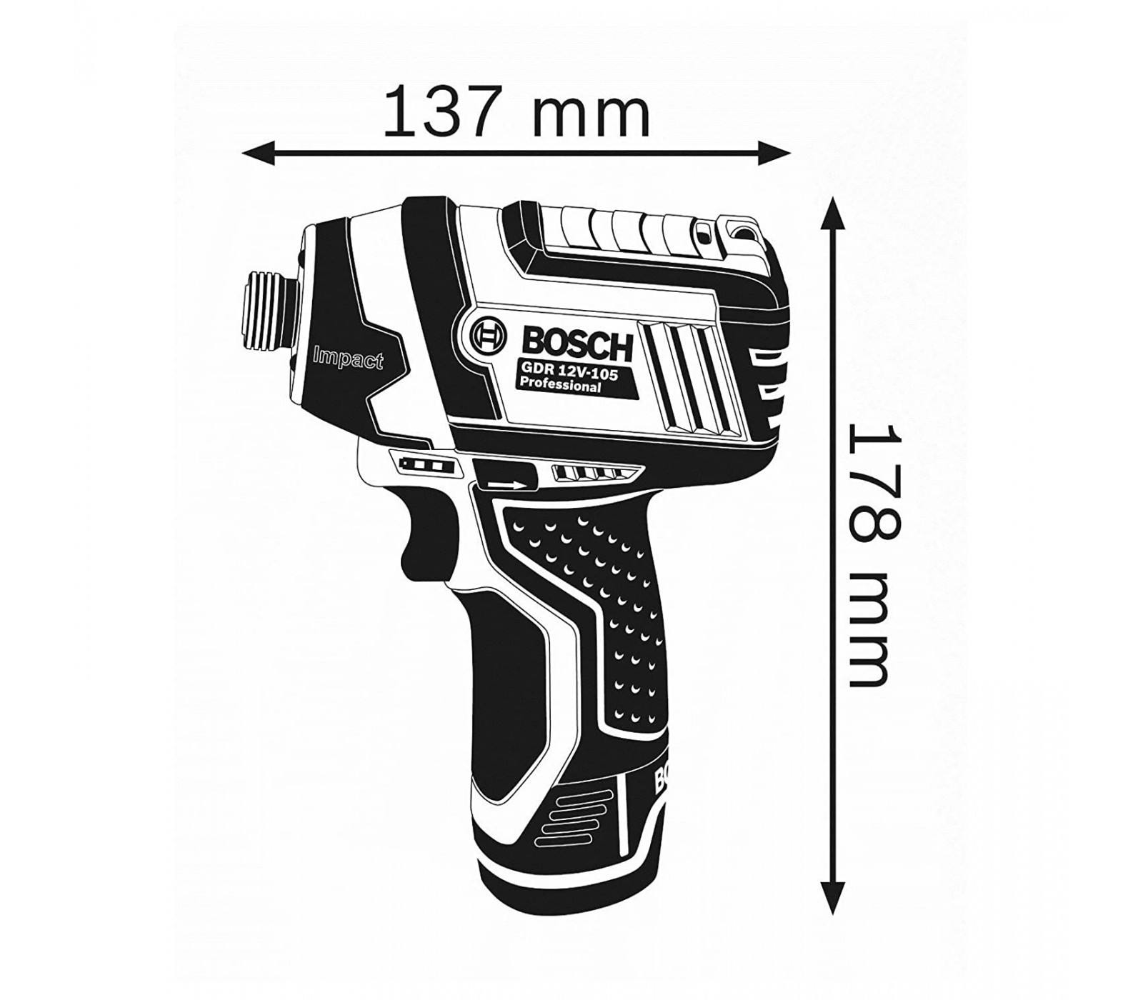 Trådløs slagdriver Bosch GDR 12V-105 + etui (uden batteri og oplader)