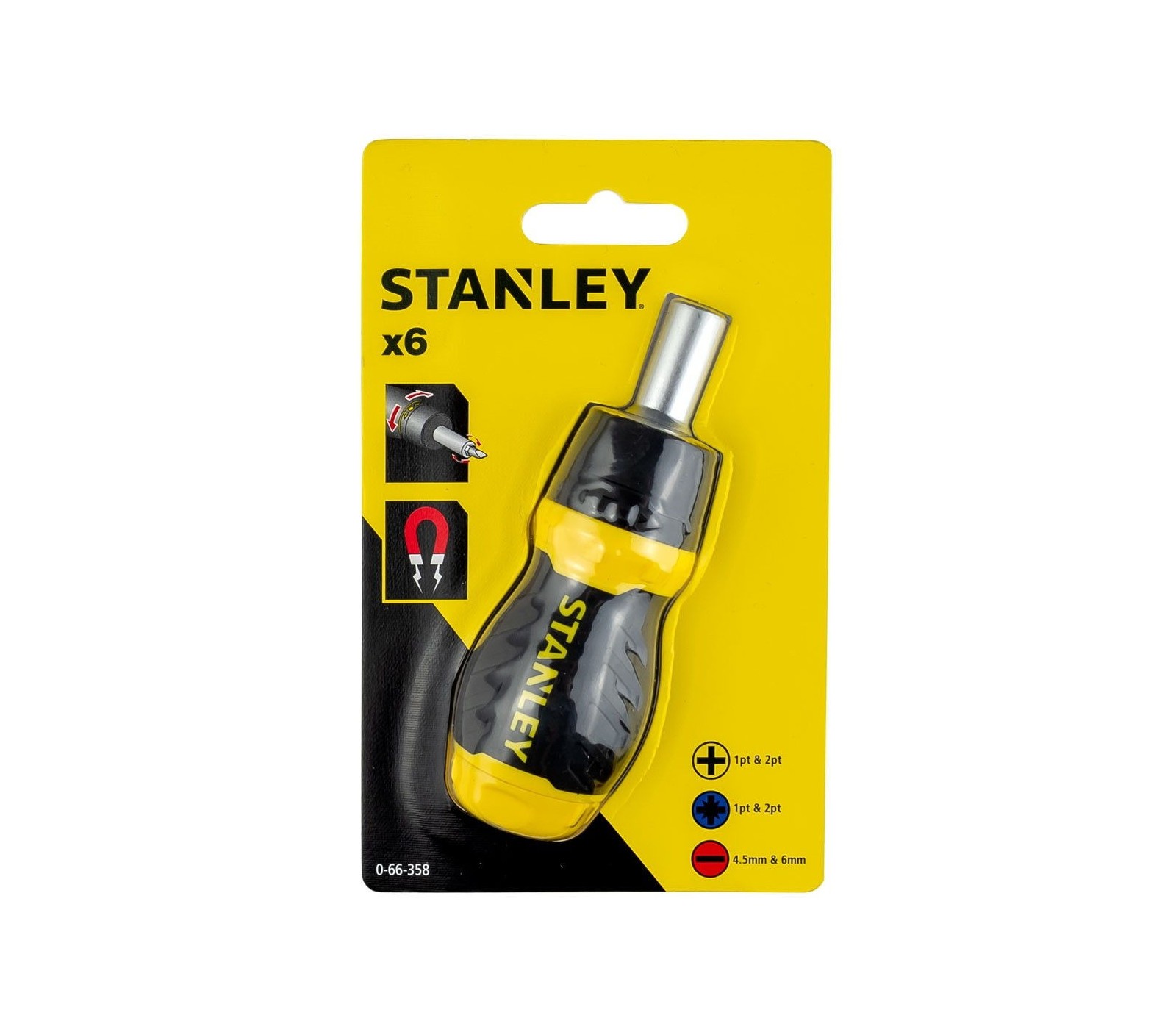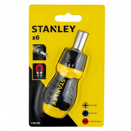 Stanley Ratchet stubby skruetrækker (0-66-358), 6 bits